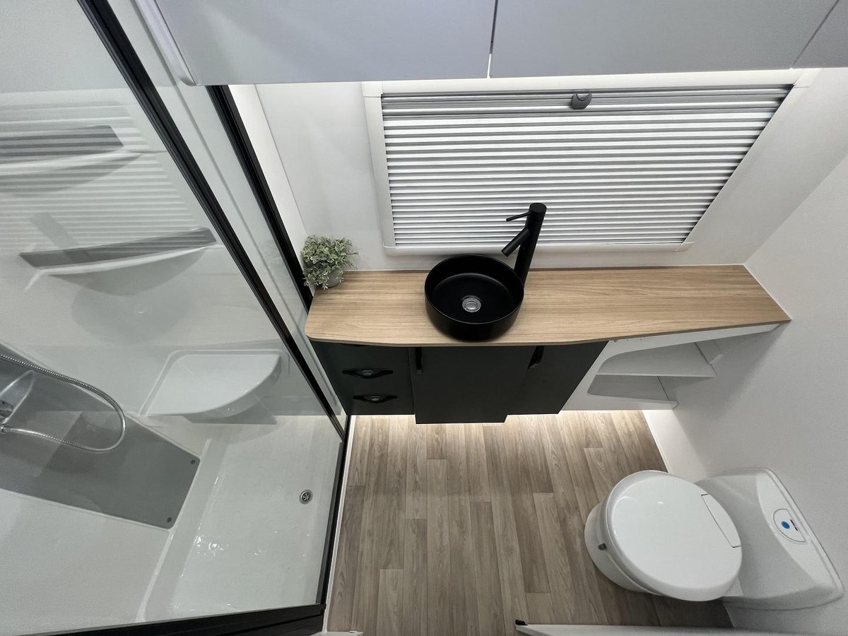 With Great Toilet leg space and Generous Shower complete with Built in leg stand
