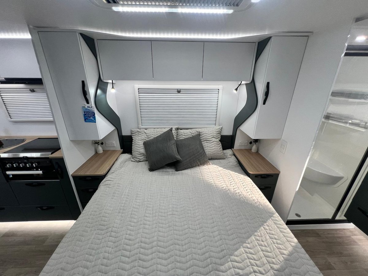 Island Bed with bed side tables, 12v points